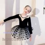 子供 バレエ ワンピース ダンス 衣装 レオタード チュチュスカート付き 練習着 チュールスカート ジュニア キッズ 水玉柄 フリル 女の子 ダンスウエア 演出服