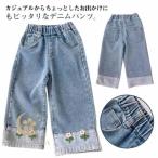 キッズ デニム ロングパンツ 子供服 女の子 ジーンズ ワイド パンツ 春夏秋 ストレート 花 ワイドパンツ ウエストゴム ジュニア 服 長ズボン ゆ