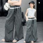 キッズ ワイドパンツ ギンガムチェック 夏 女の子 ロールアップパンツ ゆったり ロングパンツ 女児 長ズボン 綿混 薄手 チェック柄 バレンタイン 2023 プレゼント