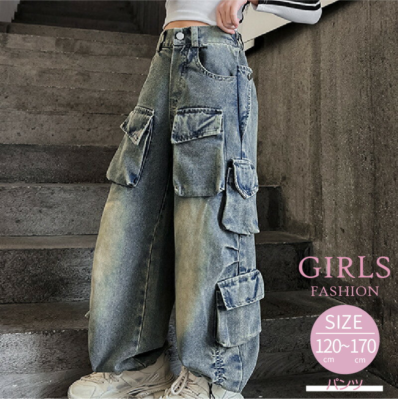 子供 ジーンズ ワークパンツ キッズ 120 130 140 150 160 170 cm ジュニア 女の子 デニム パンツ ズボン ロング丈 長ズボン ロングパンツ ダンス 衣装 小学生 中学生 春服 秋服