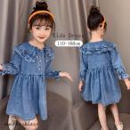 ワンピース 子供服 キッズ 長袖ワンピース 女の子 秋 冬 デニムワンピース 折り襟 無地 子供ドレス ジュニア フレア おしゃれ 可愛い カジュアル