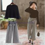 子供服 上下セット長袖 Tシャツ トップス ガウチョパンツ チェク柄可愛い 2点セット 女の子 お姫様 おしゃれ キッズ