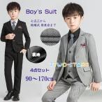 フォーマルスーツ 男の子 スーツ キッズ 子供服 4点セット 上下セット セットアップ タキシード ストライプ 黒 ジュニア 入学式 卒業式 七五三 結婚式 発表会