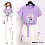 送料無料 子供服 女の子 Tシャツ スカート 夏服 上下セット キッズ お出かけ プリント 活動 姫系 キャンパス スポーツウェア ネイビー ピンク ホワイト 110 120 130 140 150 160cm原産国:中国 素...