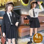 上下セット キッズ ワンピース ブレザー ネクタイ プリーツ風 子供服 かわいい おしゃれ シンプル イベント エンブレム