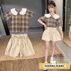 子供服 セットアップ キッズ 女の子 韓国子供服 上下セット トップス 半袖 Tシャツ シフォン ショートパンツ カジュアル デニム 春夏 可愛い 通学着 通園着