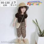 セットアップ 上下セット 2点セット キッズ 子供服 カットソー 半袖 クロップドパンツ ジョガーパンツ パフスリーブ 背中開き 無地 レオパード柄