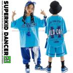ヒップホップ 衣装 キッズダンス衣装 セットアップ 韓国 子供ダンス服 派手 水色 K-POP hiphop 男の子 ガールズ ダンス衣装 キッズ Tシャツ パンツ