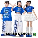 ガールズ ヒップホップ 衣装 青 白 K-POP 韓国 子供ダンス服 ダンスウェア ダンスレッスン着 へそ出し トップス パンツ スカート キッズダンス衣装 男の子