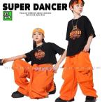 ヒップホップ 衣装 黒 オレンジ キッズダンス衣装 セットアップ 子供ダンス服 派手 K-POP 韓国 レッスン着 Tシャツ パンツ