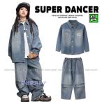 キッズダンス衣装 セットアップ ヒップホップ ダンスファッション ダンス衣装 男の子 ガールズ デニムシャツ デニムパンツ K-POP 韓国