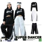キッズダンス衣装 セットアップ へそ出し トップス ラインパンツ ヒップホップ 衣装 K-POP 韓国 レッスン着 子供ダンス服 ガールズ 黒 白