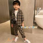 セレモニースーツ フォーマル 発表会 卒園式 入学式 入学式 卒業式 フォーマル チェック柄 ノーカラージャケット セットアップ(ロングパンツ)