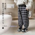 ロングパンツ キッズ 冬 チェック柄 黒白 ユニセックス 男の子 女の子 裏起毛 裏ボアパンツ 子ども ズボン ジュニア ウエストゴム 裾ゴム