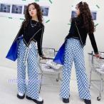 キッズダンス衣装 ヒップホップ HIPHOP セットアップ 子供 チェックトップス チェック柄 ズボン ガールズ レディース ロングパンツ 練習着 演出服