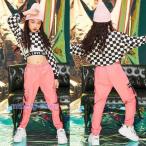 HIPHOP ダンス 衣装 キッズ チェック柄 上下セットアップ 長袖 パンツ ジャズ ダンス 衣装 キッズ 体操服 18xh679