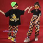 ヒップホップ ダンス衣装 キッズ セットアップ ダンスファッション 派手 Tシャツ パンツ K-POP 韓国 格子柄 フラッグチェック 黄色