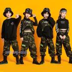 キッズダンス衣装 セットアップ ヒップホップ ファッション ガールズ ダンス衣装 トップス 迷彩パンツ ミリタリー 派手 K-POP 韓国 黒 カーキ 迷彩柄