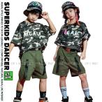 キッズダンス衣装 セットアップ ヒップホップ ファッション 男の子 ガールズ 迷彩柄 カモフラージュ ミリタリー 派手 K-POP 韓国 カーキ