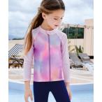 キッズ トップス ラッシュガード 水着 女の子 スイムキャップ 2点セット 110 120 130 140 150 長袖 前開き ハイネック ラグランスリーブ