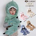被り物 恐竜 キッズ 着ぐるみ 帽子 ネックウォーマー ディノサウルス 暖かい もこもこ マフラー付き フード 手袋付き ボア 防寒 耳あて 送料無料