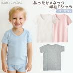 combimini 半袖Tシャツ Vネック 肌着 インナー 下着 キッズ 子ども 無地 冬 あたたかい 綿100% ニット コットン 100% ロンT 幼稚園 保育園 小学校 コンビミニ