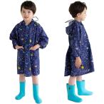 レインコート キッズ 雨具 レインウェア カッパ ランドセル対応 男の子 女の子 子供 ベビー 通園 通学 (ネイビー・コスモ, 95)