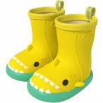 キッズ 靴 レイン ブーツ シューズ 長靴 サメ 恐竜 ゴム製 防水 かわいい おしゃれ 登園 (イエロー-グリーン, 14.0 cm)