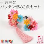 七五三 髪飾り 2点セット 【 つまみ細工 A D F K 】 パッチン留め 簡単 三歳 七歳 女の子 ガールズ キッズ 子供 おしゃれ かわいい 10colors