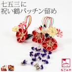 七五三 髪飾り 3歳 7歳 通年用 日本製 正絹 パッチン留め 2個セット 鶴 水引 つまみ細工 キッズ