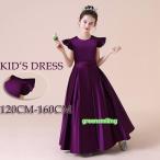 【髪飾りプレゼント中】キッズドレス ピアノ 発表会 ワンピース 半袖 ロング丈 ラウンドネック シンプル 光沢 お姫様 女の子 結婚式 子供 大人っぽい 誕生日