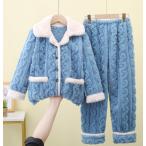 パジャマ キッズ 子供服 男女兼用 冬 ルームウェア 厚手 パジャマ モコモコ 可愛い 長袖 フランネル セットアップ 部屋着 柔らかい 防寒着 秋冬 前開き80-150