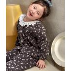 パジャマ 「厚手/セットアップ」長袖 レース襟 パイピング 総柄 前開きトップス+ロングパンツ ルームウェア上下2点セット キッズ