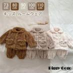 ベビー パジャマ キッズ 前開き 上下セット キッズ ルームウェア 3色 ボア 子供服 秋冬 もこもこ 男の子 女の子 セットアップ トップス ズボン 厚手 防寒 寝間着