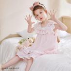 女の子 半袖 パジャマ セットアップ ガールズ ルームウェア トップス+パンツ 上下2点セット 女児 ナイトウェア 子供服 キッズホームウェア お姫系 部屋着 綿