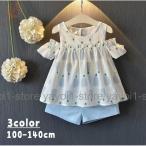 セットアップ 半袖ブラウス オフショルダー ショートパンツ パイナップル 子供用 キッズ セットアップ ツーピース トップス ボトムス 短パン 半ズボ