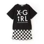 X-girl Stages エックスガール ステージス ロゴT+ブロックチェック柄スカートセット 半袖 クロ ブラック 80 90 100 110 120 130 140cm キッズ
