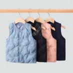 ダウンベスト アウターウエア キッズ ジュニア 子供用 女の子 男の子 アウター グルーネック インナー 軽い 保温 上着 カジュアル シンプル 刺繍 おしゃれ