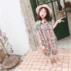 オールインワン キッズ サロペット オーバーオール 子供 女の子 おしゃれ かわいい 花柄 ボタニカル 夏服 シャツ 韓国子供服