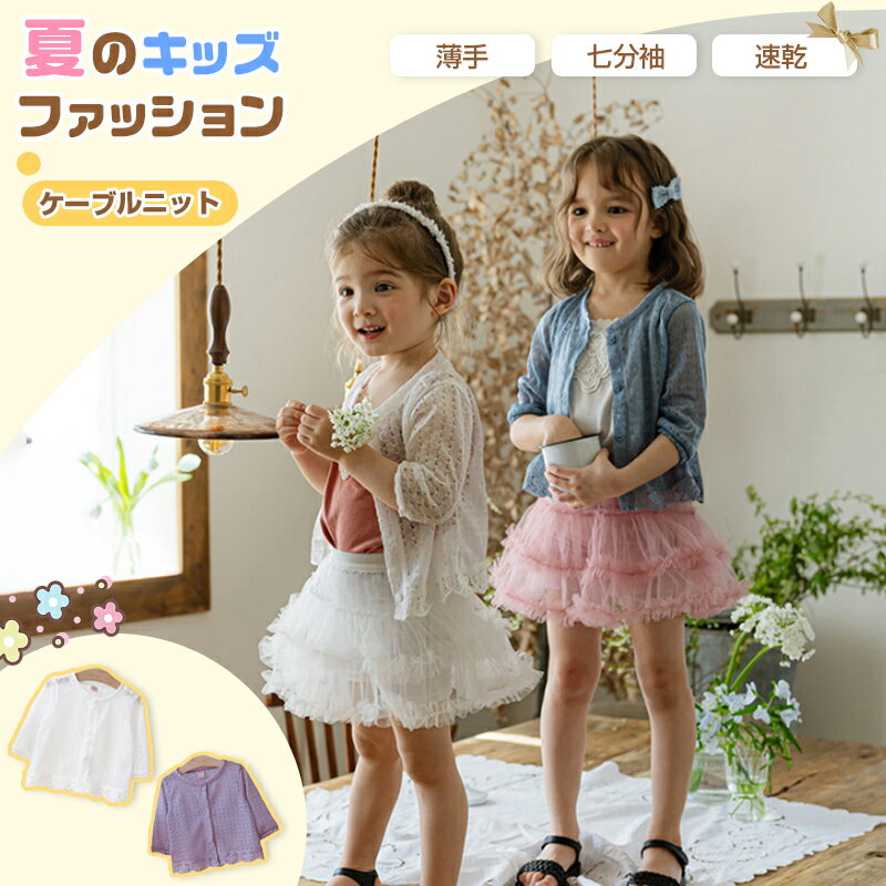 カーディガン フリルカラー透かし編みニットカーディガン キッズ 子供服 女の子