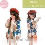 ニット カーディガン キッズ 秋冬 女の子 厚手 ロング コート アーガイル 前開き ニットセーター子供服 ヘチマ襟 羽織り 軽量 トップス ジュニア アウター