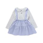 BeBe / べべ 針抜き丸襟長袖ブラウス+サスペンダースカートセット(80~100cm)