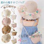 【全品5%OFF】【メール便対応・送料無料】 麦わら帽子 キッズ 子供用 キッズ帽子リボン付き 麦わらバッグ キッズショルダーバッグ 編みバッ 紫外線対策 女の子 UVカット 帽子 おしゃれ つば広帽子 麦わら ハット 子供用 旅行 海 防紫外線 2点セット