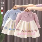 ワンピース 女の子 秋 冬 長袖 ドレス セーター キッズ おしゃれ きれいめ カジュアル リボン フレアスカート 可愛い 通園 通学 発表会 女児 卒園式 入学式