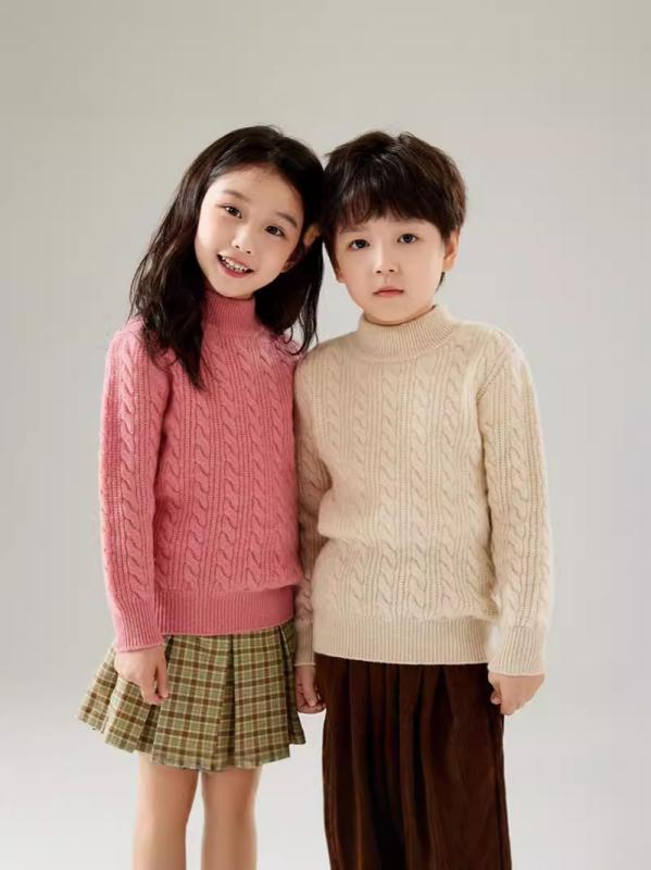 キッズセーター 男女兼用 ジュニア 秋冬 カシミヤ 厚手 保温性 暖かい モックネック 無地 長袖 プルオーバー やわらか素材 親子コーデ 小学生 中学生向け