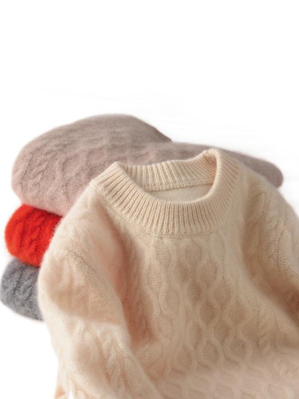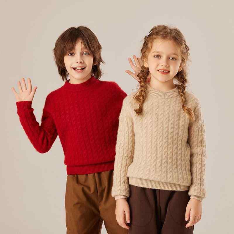 キッズセーター ベビー男女兼用 純羊毛 厚手保暖 丸首ケーブルニット 無地 秋冬 高級感 吸湿速乾 軽量 室内着 通学 アウトドア