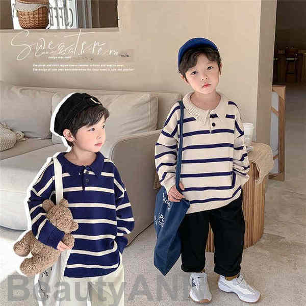 ゆ 春秋 こどもの日 タートルネックセーター ストライプ柄 トップス 韓国子供服 セーターキッズ polo ニット 長袖 男の子 子供服