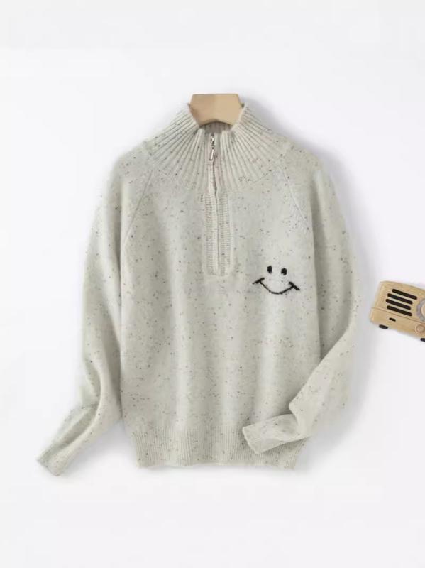 キッズ セーター ニット 男女兼用 プルオーバー ハーフオープンカラー 襟付き ラグランスリーブ スマイル ゆったり ルーズフィット 厚手 長袖 柔らかな肌触り 秋冬 ウール 羊毛100% 着回し カジュアル