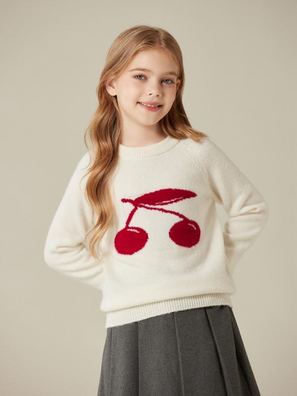 キッズ セーター 男の子 女の子 ラウンドネック プルオーバー 長袖 厚手 ゆったり ニット インナー 可愛い チェリー プリント 秋 柔らかい シンプル クリーム グレー 黒