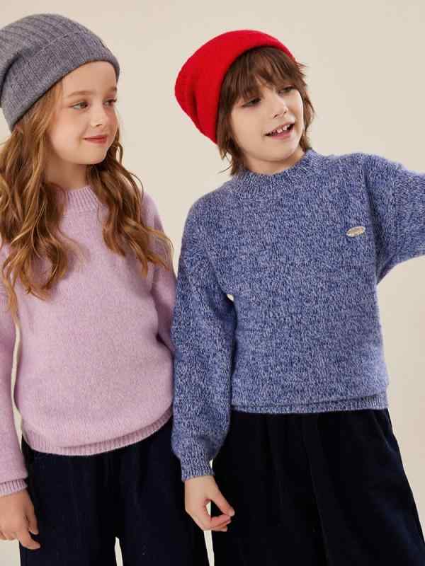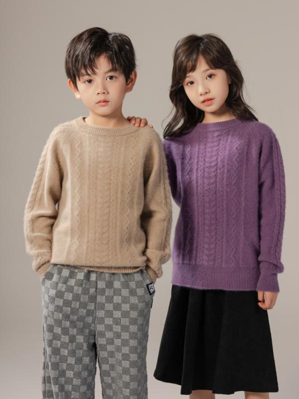 キッズ セーター 男女兼用 ユニセックス 山羊カシミヤ 秋冬春 厚手 暖かい 柔らかい肌触り 丸首 クルーネック シンプル 無地 ジュニア 通学 部屋着 カジュアル